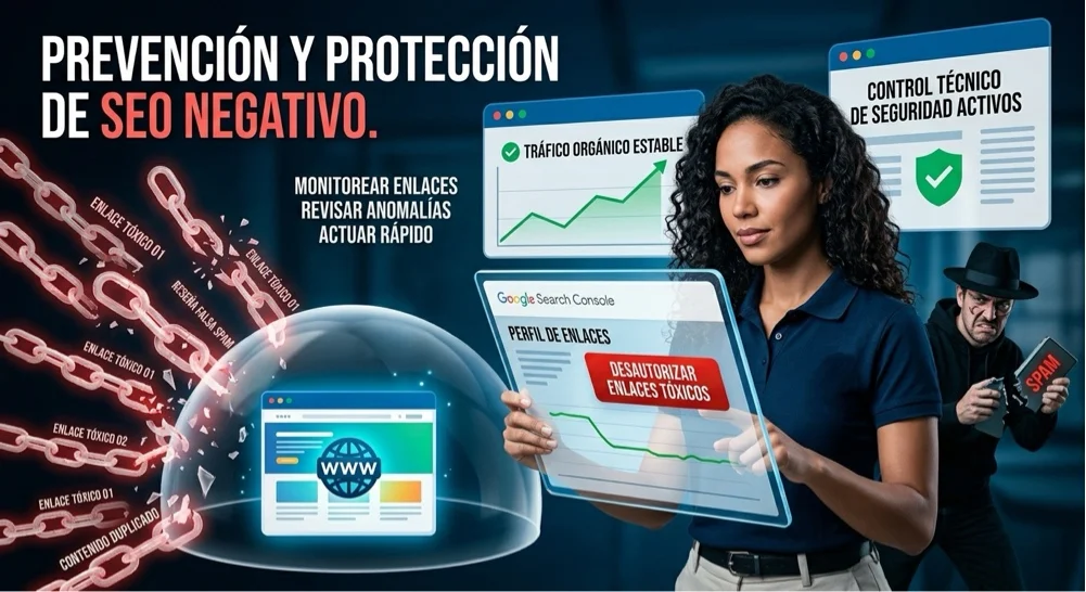 También es clave actuar rápido ante cualquier anomalía y aplicar medidas como la desautorización de enlaces cuando sea necesario. En este artículo verás cómo identificar, prevenir y corregir el SEO negativo con un enfoque práctico y orientado a negocio.